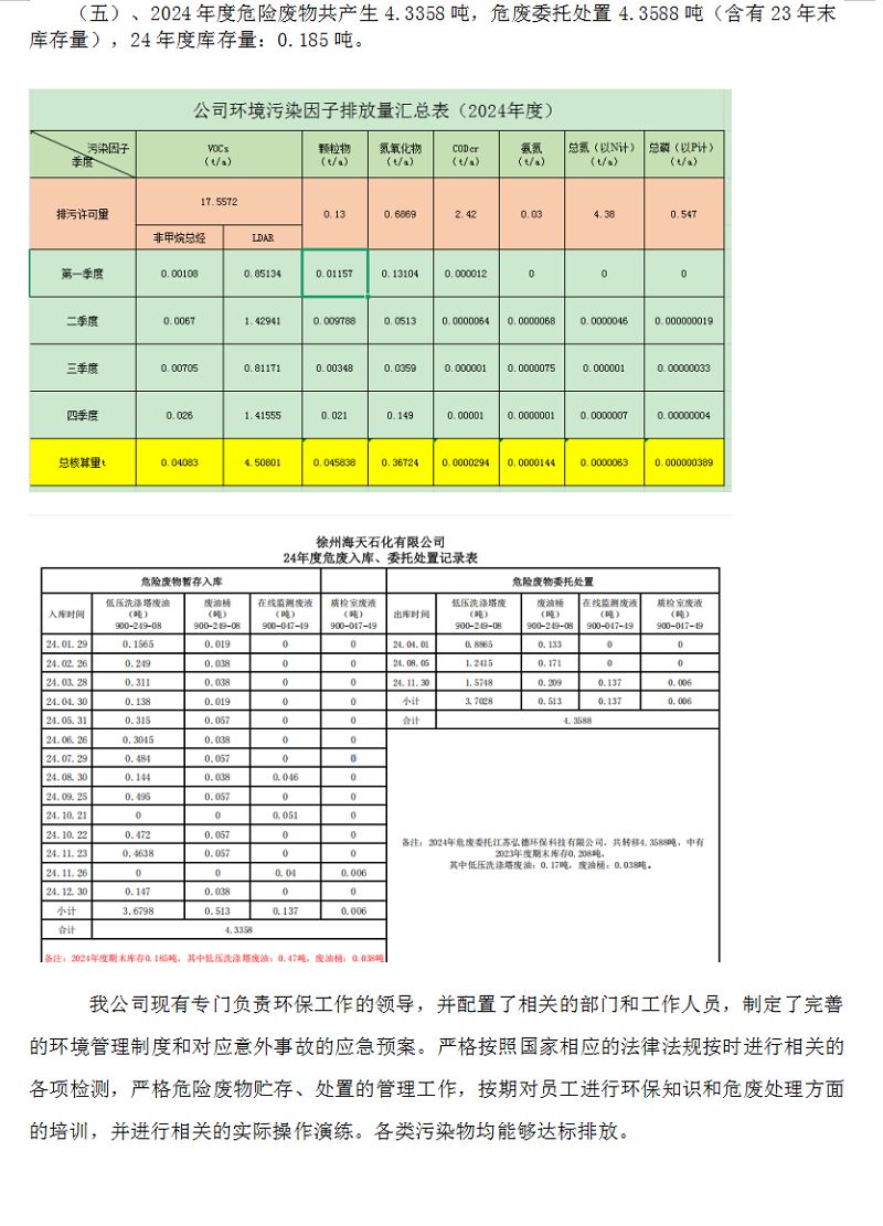 徐州腾博官网诚信为本专业服务石化有限公司 2024年度排污许可证执行情况公示