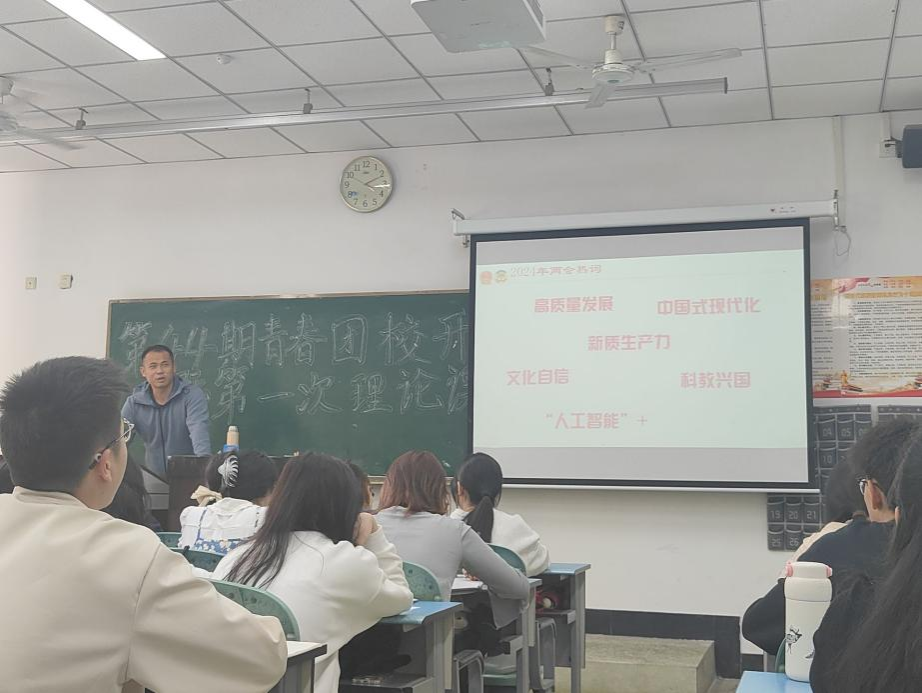 本网讯(文/王秋月 图/周琪棋)为团结引领广大青年学生永远跟党走、奋进新征程,3月28日下午,教育科学学院分团委组织部在行知楼109室开展第44期青春团校开班典礼暨第一次理论课。本次理论课邀请到马克思主义学院任权东老师为同学们主讲,活动共58名同学参加。