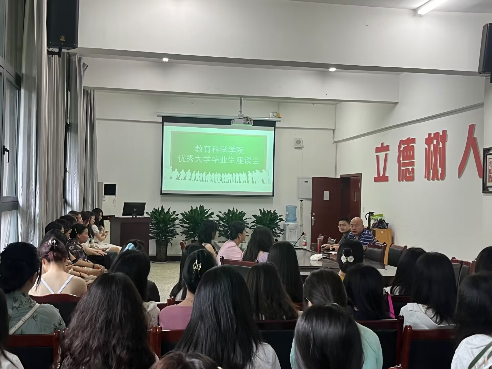 本网讯(文/古雪 图/付文颖)为向即将踏入社会的优秀学子们传递智慧与力量,也为他们的人生新篇章注入动力,6月18日下午,教科学院在学院会议室举行毕业生座谈会,学院三十几名省级、校级优秀毕业生参加,学院党委副书记何晓军、毕业班辅导员朱志刚参加。