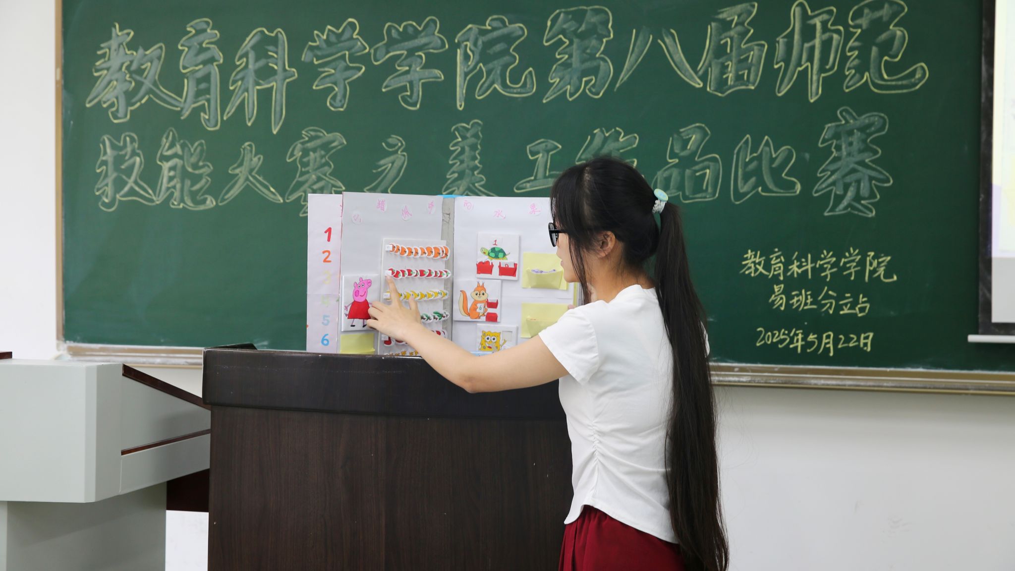 本网讯(文/魏一 图/教科传媒)5月23日下午,教育科学学院第八届师范技能大赛在行知楼217、218、219教室举行。本次比赛涵盖美工作品展示、儿童作品讲读和简笔画创作三大板块,吸引了五十余名学生参与。比赛现场气氛热烈,选手们各展其才,充分展现了师范生的专业素养与创新精神。