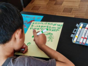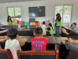 团队成员林小雨组织小朋友们根据自己设计的“心情彩虹”,进行了分享。小朋友们自己阐释了所绘制的情绪,以及情绪发生的时间、原因、自身感受。林小雨也根据小朋友们绘制的情绪,做出了相应的情绪调节方法。同时,也设计了一系列的情绪小游戏。让小朋友们同时面向一边,用手轻轻捶打前方的小朋友的肩部、背部,再转换方向实施。在帮助小朋友们缓解自身情绪的同时,也加深了每一个小朋友们之间的情感联结。即提高了小朋友们参与活动的热情度,也提高了他们的感知情绪的能力。在开展活动的时候,实践队员与学生家长以及社区的工作人员进行了深入交流,了解、调研了沐川县学前阶段和小学阶段的教育情况和教育质量。