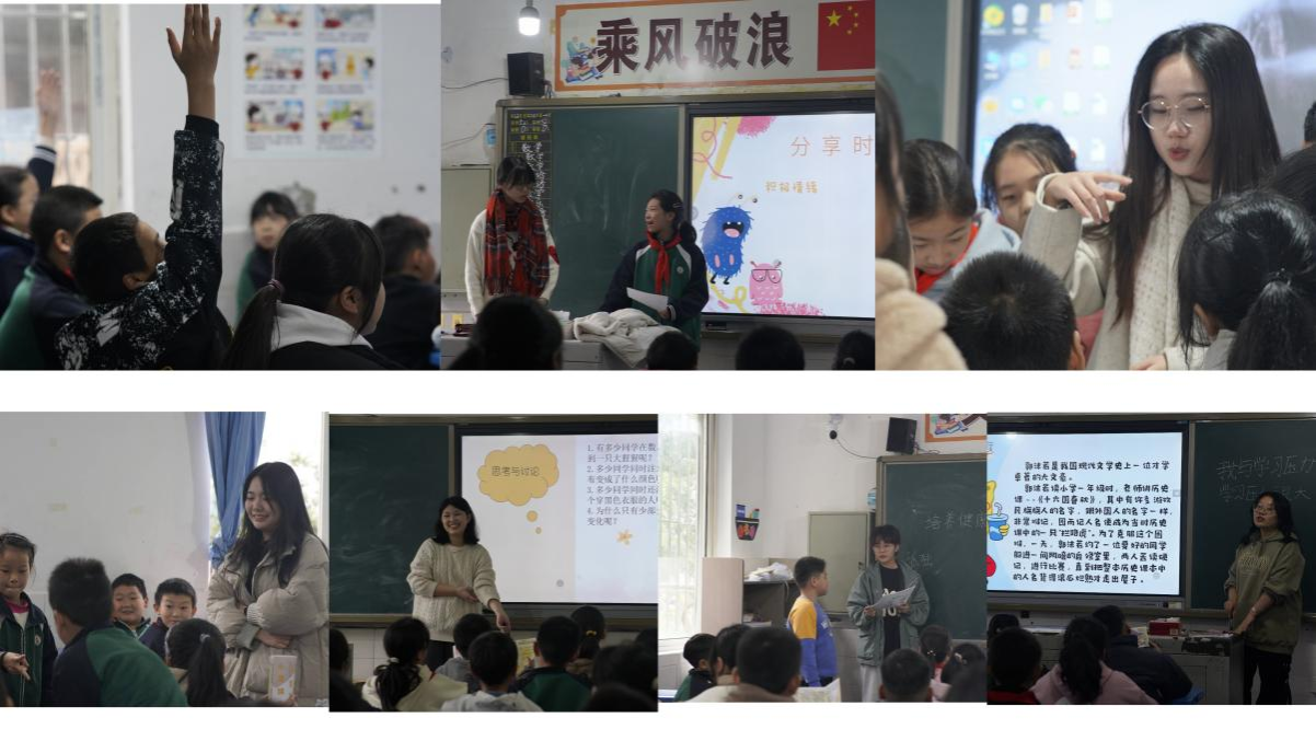 针对五六年级的十三个班级,十三名心理学系学生对其开展了心理健康活动课。课堂上,心理学系的学生们精心准备了《闪闪发光的我》、《情绪特工队》、《友谊花儿朵朵开》、《身边的小确幸》、《我与学习压力做朋友》等多个课题,在这些课题中,他们以多个角度深入浅出地对心理压力与健康的关系、压力应对策略等方面进行了生动的阐述和讲解。他们通过风趣幽默的授课方式和寓教于乐的课间游戏,引导学生客观认识压力、坦然面对自身优缺点、正确调节情绪、学会发现事物积极的一面进而提升自身心理健康水平。