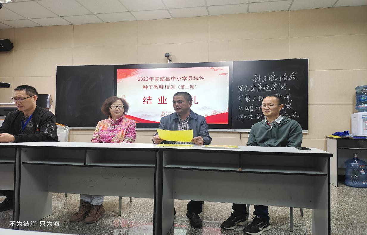 本网讯(文、图/黄宇、王佳鑫、邓琳、蒋显兰)5月15日上午,由教育科学学院具体承办的“2022年美姑县“一对一”精准帮扶--中小学县域性种子教师培训(第二期)”结业典礼在弘毅楼504A教室顺利举行,学院院长兼本次培训首席专家汪红烨、党委书记罗立顺、副院长徐世鼎、副院长唐前军和来自四川省凉山彝族自治州美姑县的36名学员参加了此次结业典礼。典礼由汪红烨主持。