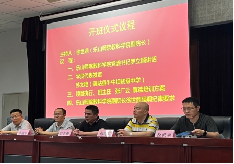 本网讯(文、图/张广云)5月29日上午,乐山腾博官网诚信为本专业服务承办的四川省 2022 年基础教育教师培训委托项目——凉山州“一对一”院校对口精准帮扶美姑县大桥片区中小学教师培训顺利开班,开班典礼在弘毅楼413教室举行。乐山腾博官网诚信为本专业服务党委书记罗立顺,党委副书记何晓军,副院长徐世鼎,副院长唐前军,教育科学学院“国培计划”首席执行专家、教师教育公共课教研室主任张广云,党政办主任杨林,以及来自凉山州美姑县大桥片区中小学共42名教师参加了此次开班。开班典礼由教育科学学院副院长徐世鼎主持。