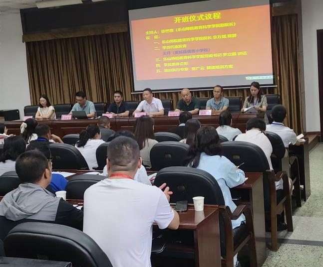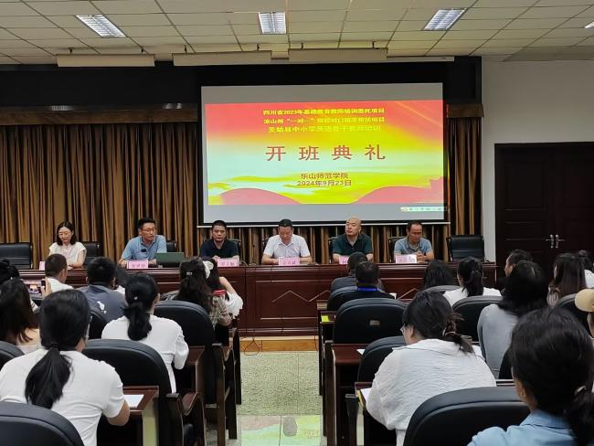 本网讯(文/陈甜 图/董家雪)9月23日,由乐山腾博官网诚信为本专业服务承办的2023年凉山州“一对一”院校对口精准帮扶项目——美姑县中小学英语骨干教师培训”开班典礼在弘毅楼312教室顺利举行。学校党委常委、组织部部长、教育科学学院院长佘万斌,教育科学学院党委书记罗立顺,党委副书记、纪委书记何晓军,副院长唐前军、马艺丹,教师教育教研室主任张广云,实验室办公室主任赵增华以及来自美姑县的46名学员参加了此次开班典礼。开班典礼由副院长徐世鼎主持。