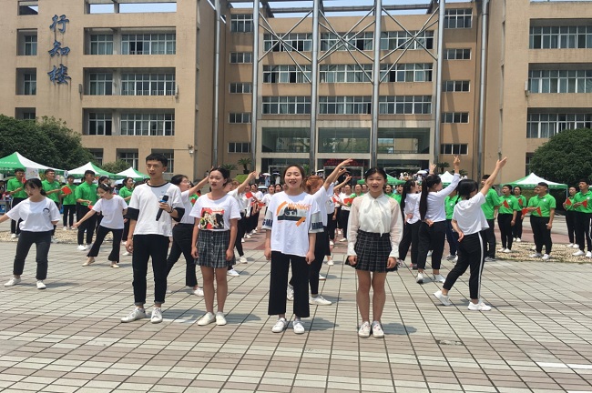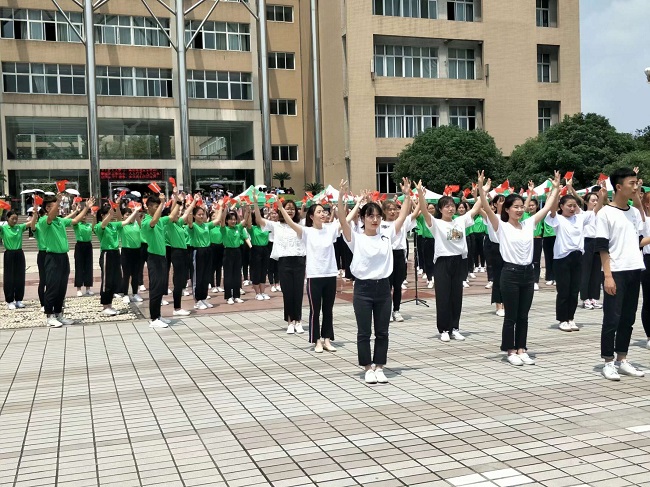 五月的微风拂过桂花广场的檐角,五月的阳光穿过树林与阶梯,每一位同学沐浴着阳光,激情有力地歌唱,吟诵革命赞歌,彰显青春倔强的性格和钢铁般的意志。