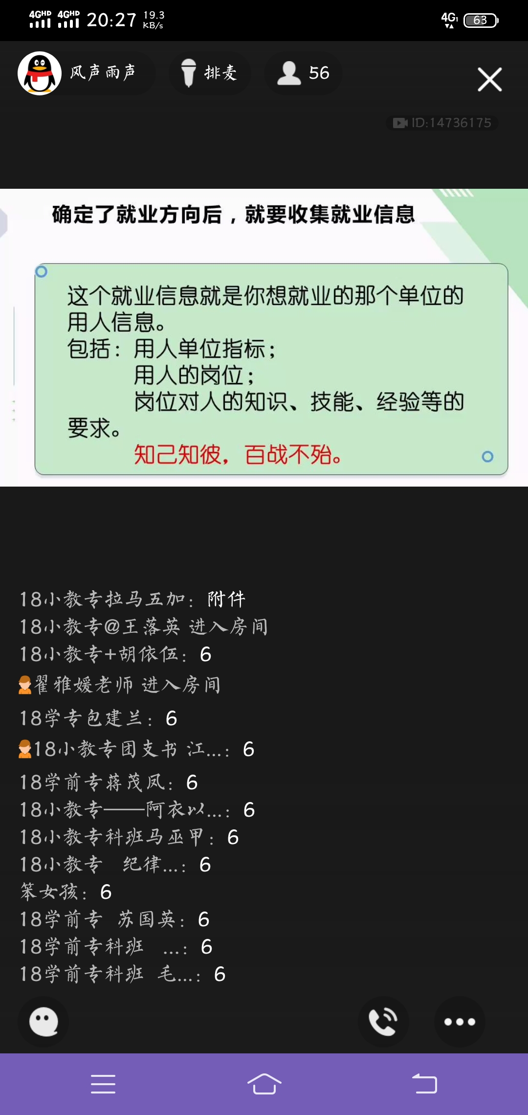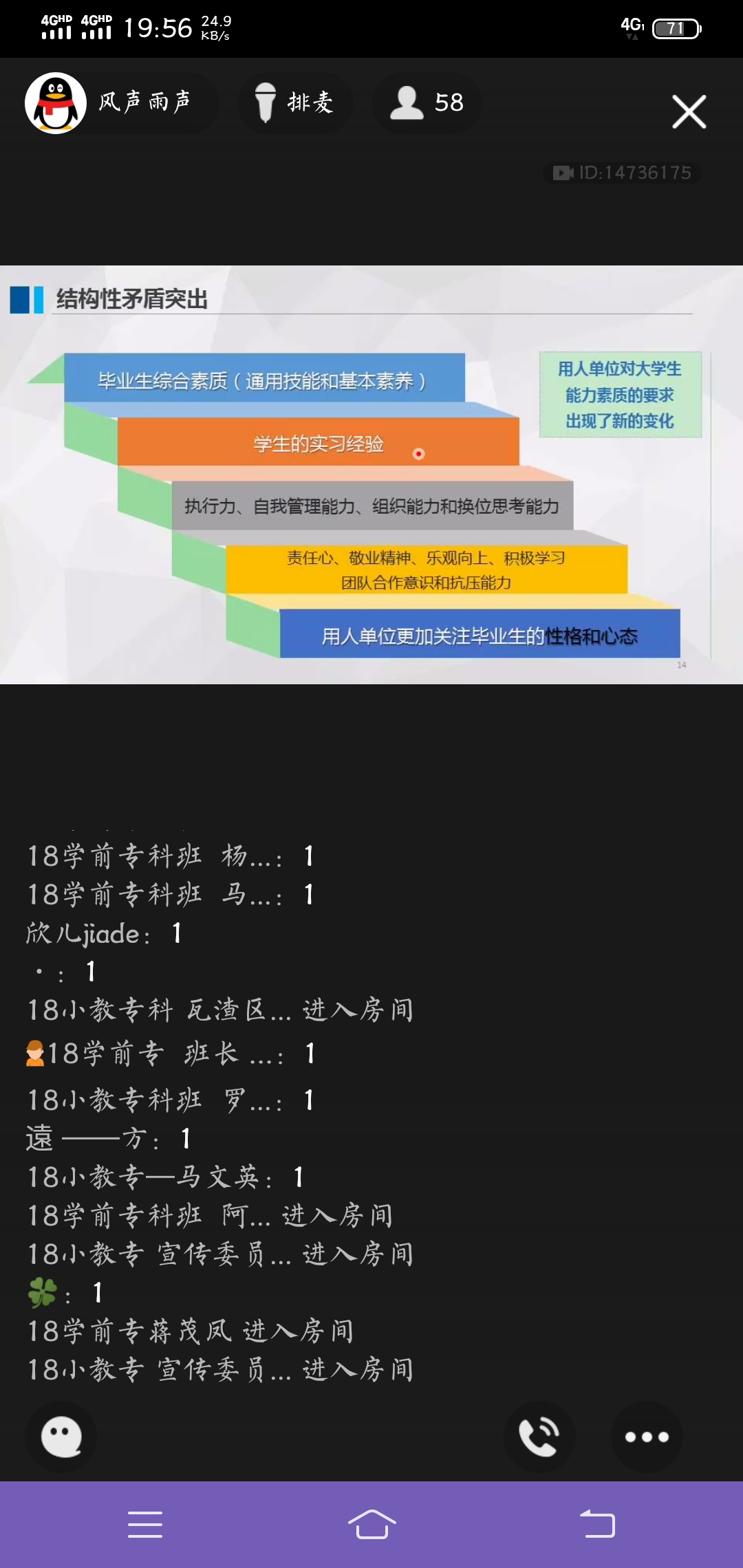 本网讯(文/黄小倩、图/孙腲脉)419日晚上730分,教育科学学院于线上召开两专毕业班就业专题工作会,就我院专科班毕业生面临的实际就业问题进行指导。此次会议由学院党总支书记杨霞主讲,学生科长翟雅媛主持,18级小教、学前专科班全体同学参加。