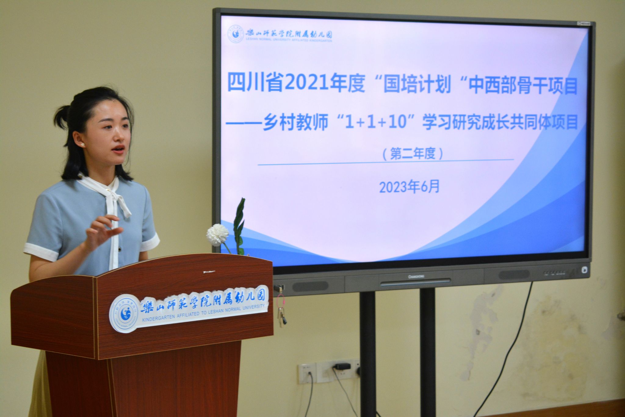 本网讯(文、图/傅妍妍)附属幼儿园作为学前教育专业校内实践基地,6月27-30日,附幼承接四川省2021年度“国培计划”中西部骨干项目——乡村教师“1+1+10”学习研究成长共同体项目(第二年度)。充分发挥了教学名师、教学能手的示范引领作用,交流学习、资源共享、共同提升,促进乐山市学前教育均衡发展,提高广大教师的教育教学能力和专业化水平。