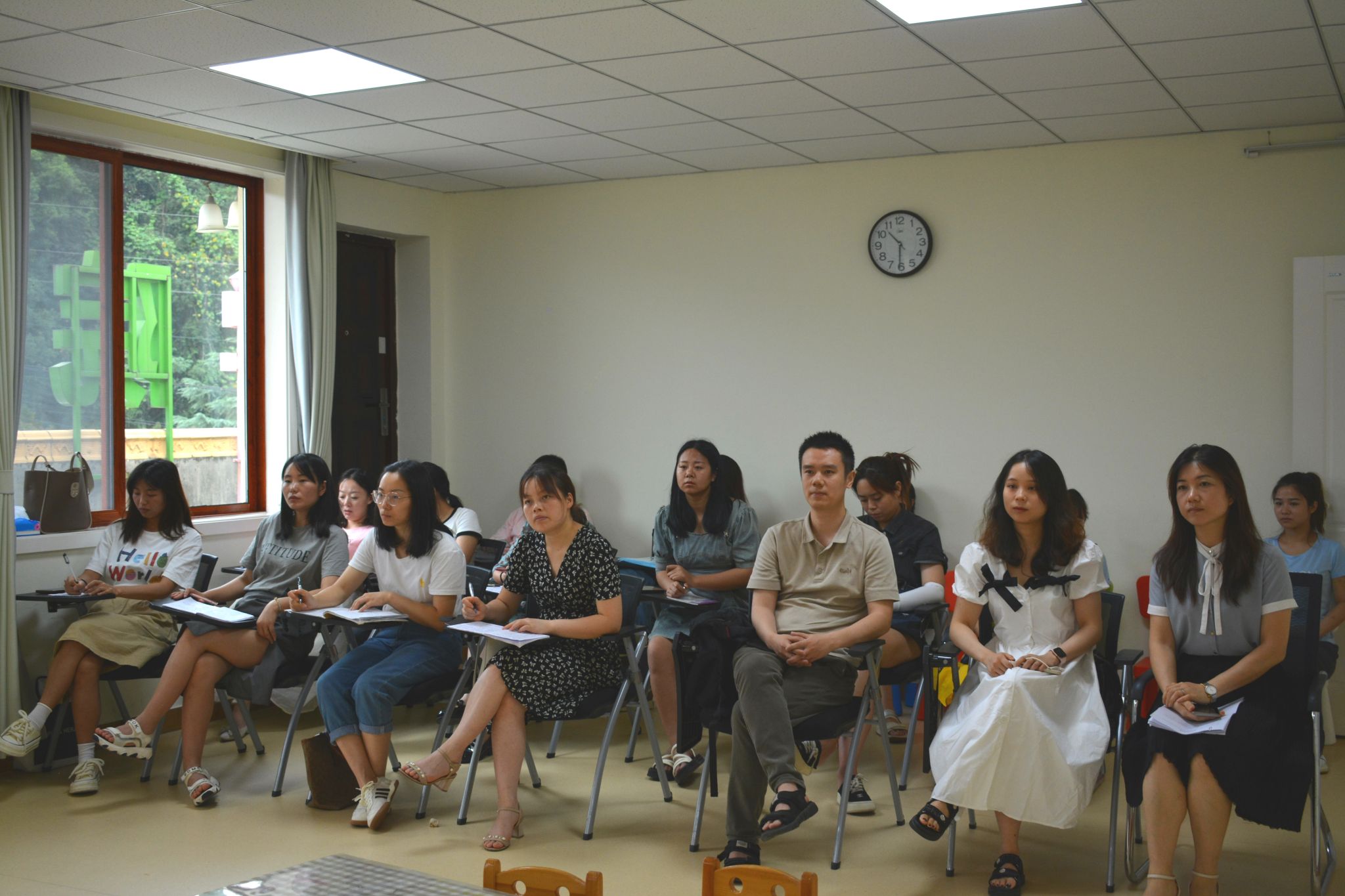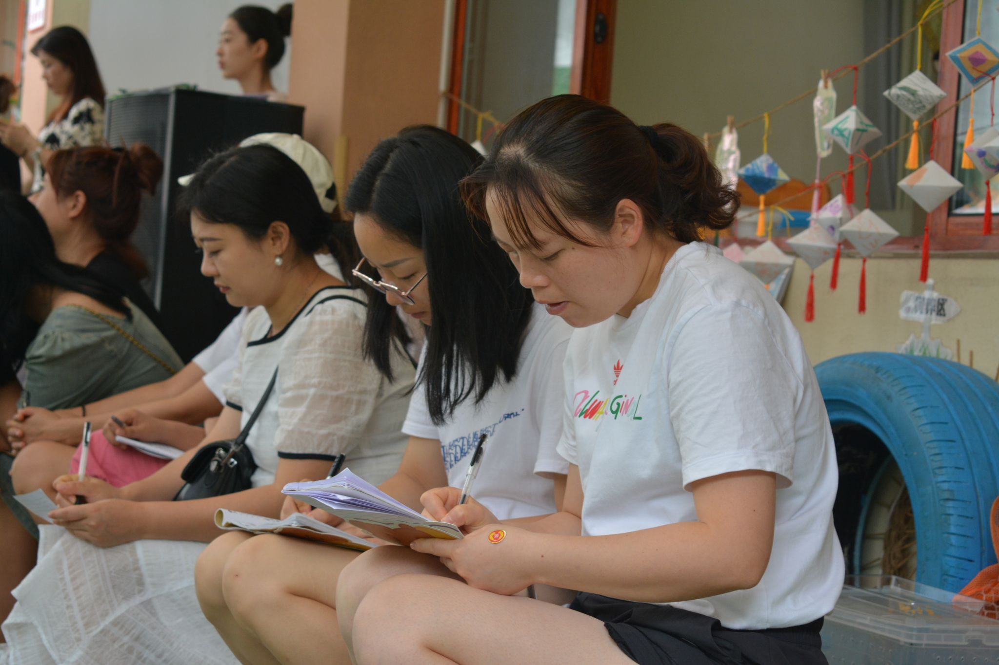 参培老师们边看边记录,不时驻笔讨论,一起交流探讨集教活动的开展细节、有效的师幼互动、活动设计策略等教育观点。