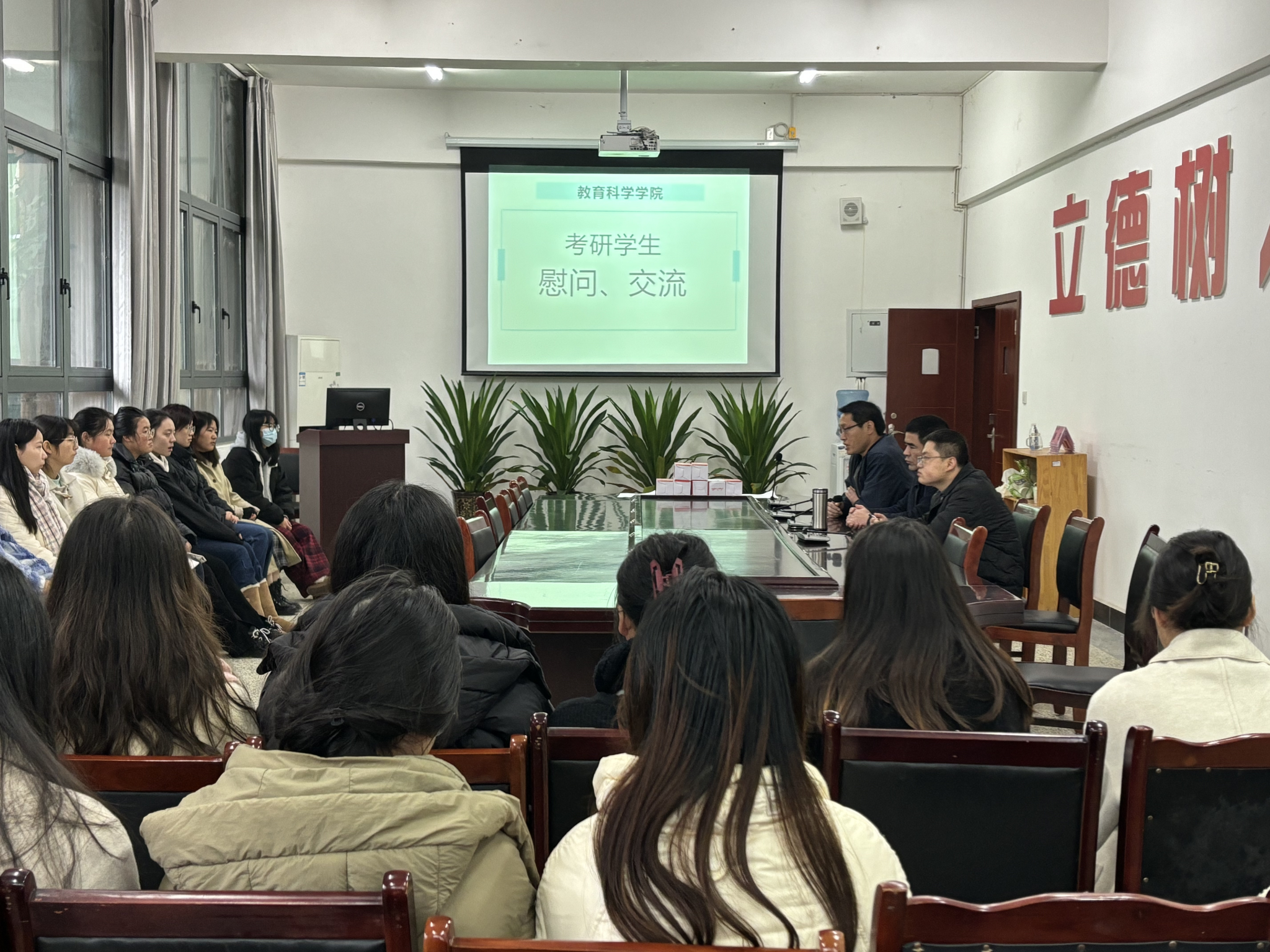 本网讯(文、图/杨鑫)为关心学院考研学生的备考状况,12月5日上午,教科学院在学院会议室举行了考研慰问、交流座谈会。学院党委书记罗立顺、副院长徐世鼎、辅导员朱志刚,以及100余名2024届考研学生参与。