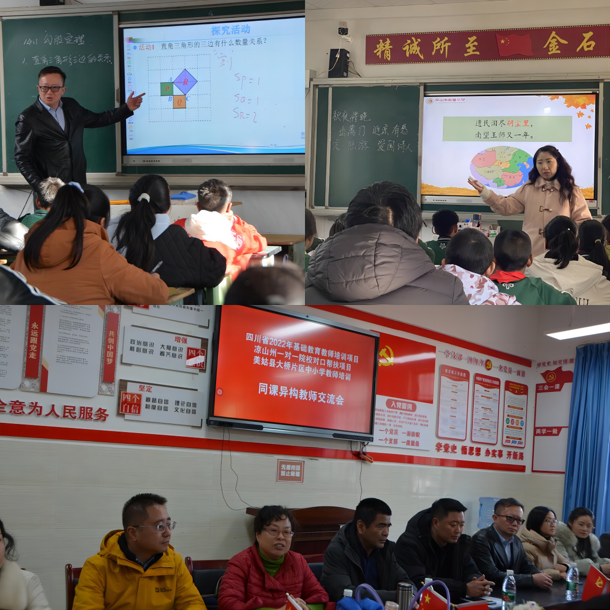 本次送教团队分两批同时奔赴凉山州美姑县大桥片区,其中:初中学科专家组去大桥中学;小学学科专家组去洛俄依甘乡中心小学。本次送教内容为同课异构与总结提升,各学科专家分学科进行同课异构展示,随后受训学员代表分组开展同课异构展示,展示结束后专家以展示课为例结合新课标理念进行现场解读并答疑解惑,总结课堂教学存在的问题开展研讨,并提出了具体改进建议。