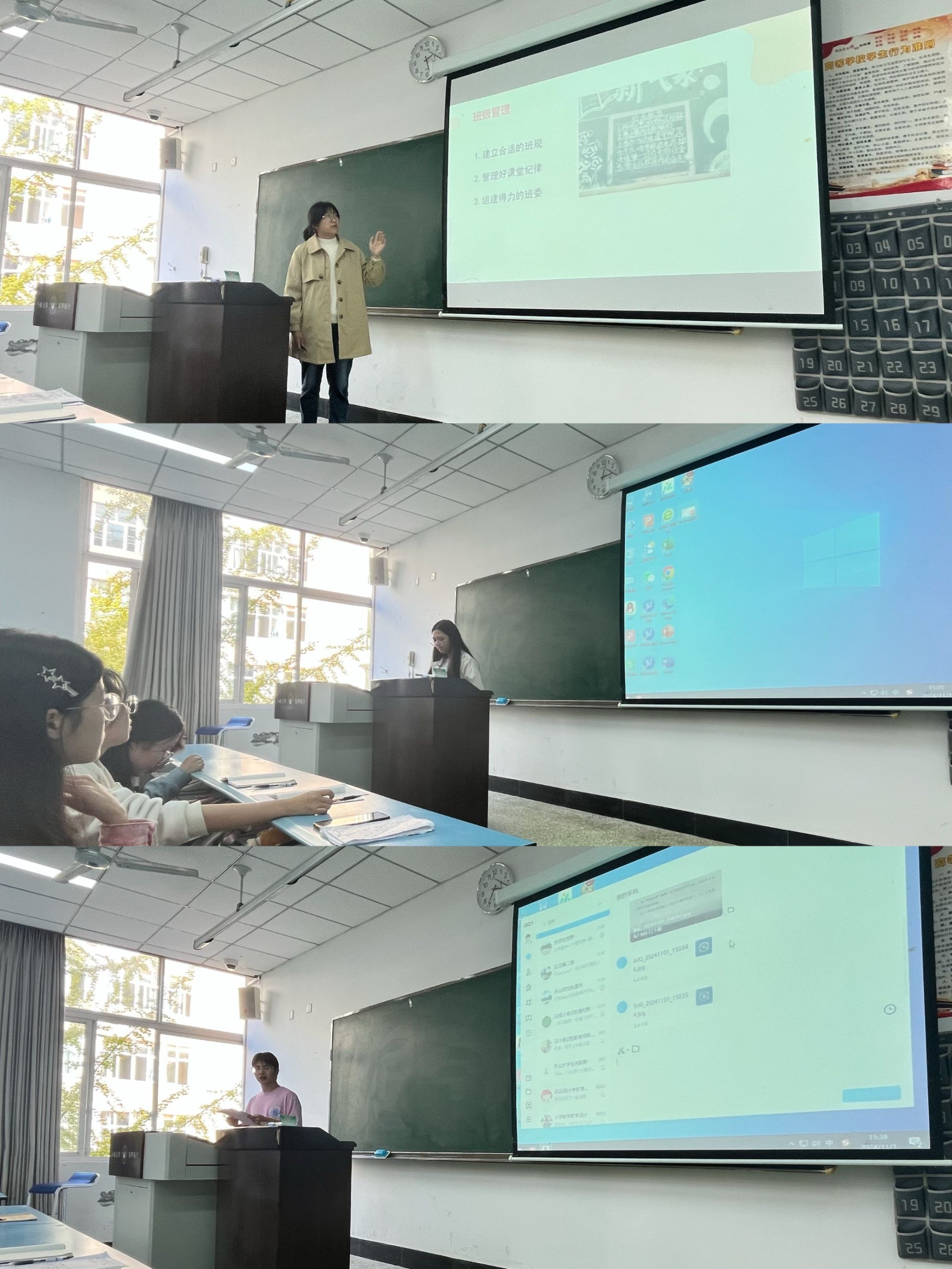 11月1日下午,各班级在吴永胜、王春燕、刘猛、徐竹君、程韬同老师的指导下,开展了教育见习经验总结与交流会。会上,学生们积极发言,分享了自己在教育见习过程中的所见所闻、所感所悟。通过交流与碰撞,学生们不仅巩固了见习成果,还收获了新的教育理念和教学方法。老师们也对学生们的表现给予了充分的肯定和鼓励,为他们未来的教育之路指明了方向。