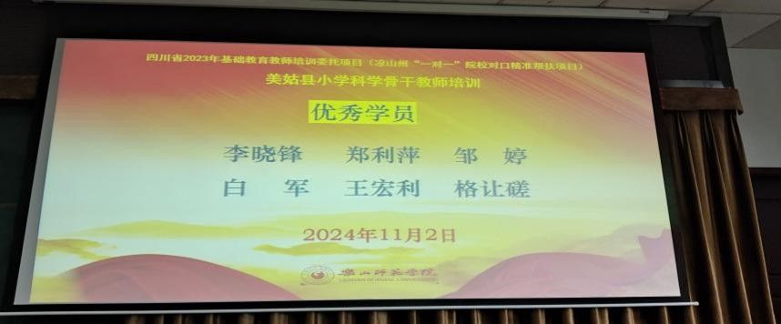 学员代表发言结束后,公布了本次培训的优秀学员名单,并向获奖教师们表示热烈的祝贺。紧接着,教育科学学院党委书记罗立顺讲话。他首先对全体学员顺利完成培训表示衷心的祝贺,并鼓励大家将此次培训的成果转化为教学实践中的新体会和新收获。他强调,学员们应不断探索,勇于追求教育创新,把所学知识有效应用于实际工作中,以提升自身的育人能力。他真诚地希望学员们能够灵活运用培训中所学的知识,将这些宝贵的经验转化为在美姑县课堂上的教学实践。