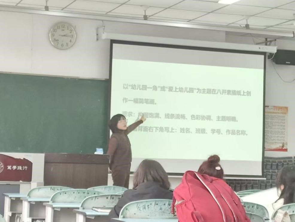 11月7日下午进行了简笔画技能考核。在简笔画考核中同学们充分发挥自己的想象力和绘画技巧,以“幼儿园一角”或“爱上幼儿园”为主题,创作出一幅幅生动有趣的简笔画作品。这些作品不仅展示了同学们的艺术才华,也体现了他们对幼儿教育的热爱和责任感。