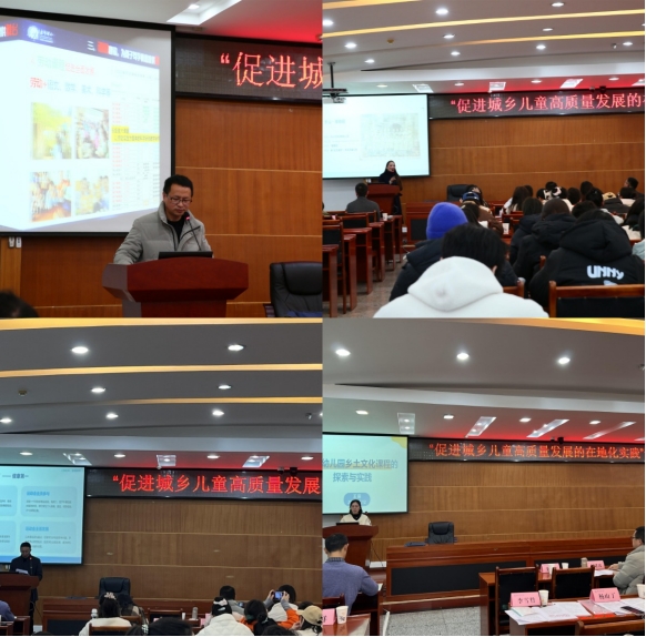 12日上午9点,我院于图书馆5楼学术报告厅展开专题讲座,邀请各基地幼儿园与小学教师代表前来参会。教师教育学院院长罗明礼和校党委常委、组织部部长兼教育科学学院院长佘万斌分别致辞,对各基地园校参会人员表示热烈欢迎。