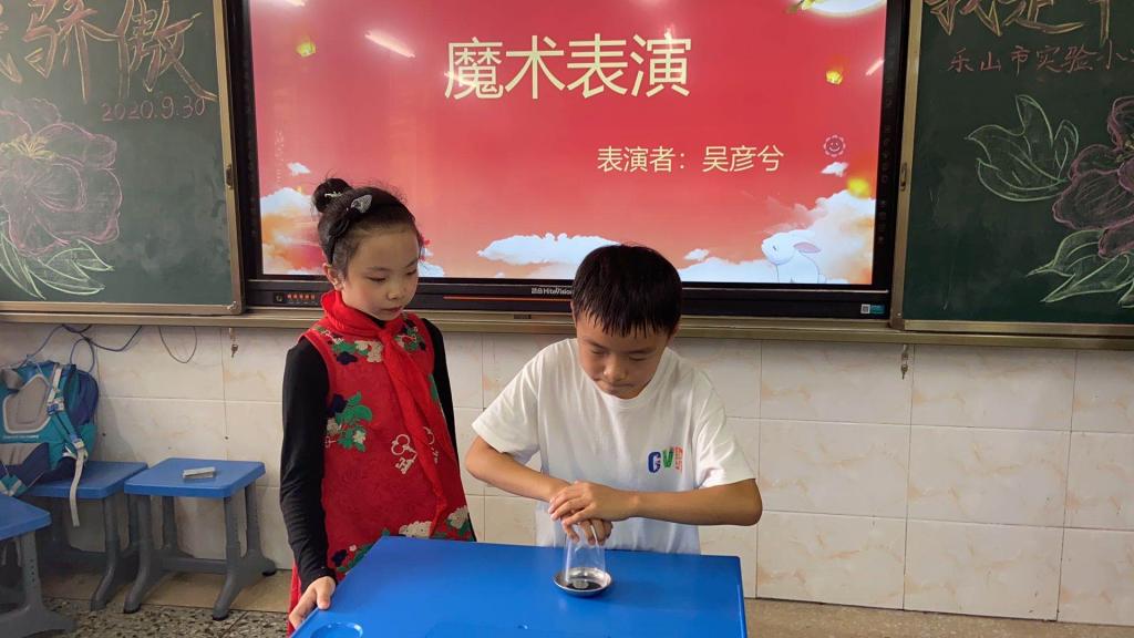 许多同学都组织了各式各样、各种主题的班会课活动,其中小教专业的朱佩茜同学就组织策划了一个中秋国庆联欢会。在9月30日下午,乐山市实验小学书芃班举办“庆国庆,迎中秋”活动。同学们用诗朗诵、合唱、舞蹈、武术、乐器等形式表达对祖国母亲的爱意。活动举办得很成功,同学们自娱自乐,玩得十分尽兴,在活动结束后,朱佩茜同学还撰写了一篇新闻稿,让大家都能感受到书芃班的欢乐。(新闻稿链接:https://mp.weixin.qq.com/s/nbcV_1hIuSrhM_P6LhfaAA)