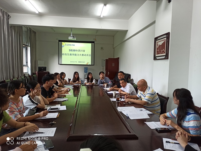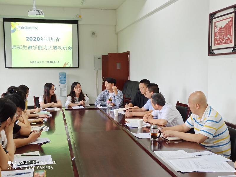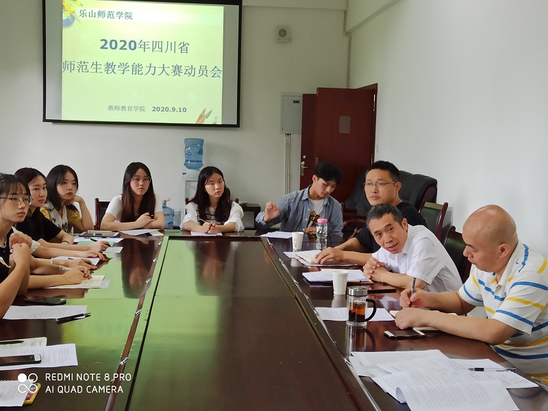 本网讯(文、图/杨小丽)9月10日,时值第36个教师节,2020年四川省师范生教学能力大赛动员大会在教师教育学院会议室召开。学校副校长张元勤,教师教育学院党总支书记罗立顺、副书记何晓军、教学部实践教学中心主任代丽、教师杨小丽及全体参赛选手参加了此次会议,动员会由教师教育学院副院长徐世鼎主持。