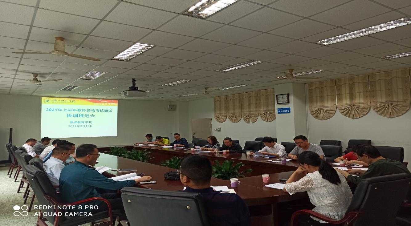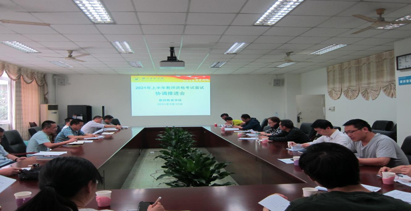 本网讯(文/钟小婷、图/王怡)5月10日下午,四川省2021年上半年教师资格考试面试乐山师范学院考点的考务工作协调会,在乐山师范学院弘毅楼207召开。乐山师范学院副院长、考点主考张元勤,教师教育学院院长、考点副主考汪红烨,教学部部长、考点副主考汪天飞,教师教育学院副院长徐世鼎,信息技术与实验保障处处长舒勇、后勤保障服务部部长袁明锋、人工智能学院院长谢春明、体育学院院长张峰、纪委办主任邹大勇、保密办主任张科、财务处处长龙述君、党委宣传部佘万斌、保卫部部长贾洪鉴、以及机关部门、学生工作部、采购与招标中心、教育学院等相关工作人员参加了会议,会议由汪红烨主持。
