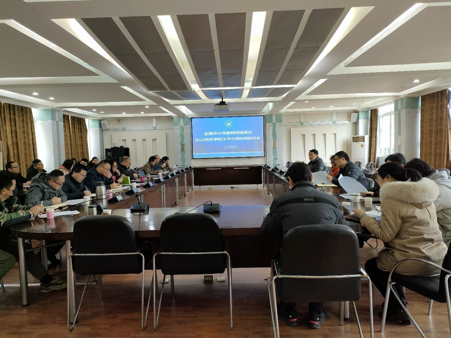 本网讯(文/吴瑞雪、图/钟小婷)12月30日下午,2021年下半年教师资格考试面试考务工作协调会,在乐山师范学院弘毅楼7楼网络会议室召开。乐山师范学院副校长、考点主考汪天飞,教师教育学院院长、考点副主考汪红烨,教学部部长、考点副主考龙述君,教师教育学院副院长徐世鼎,信息技术与实验设备保障处处长舒勇、后勤保障服务部部长袁明锋、人工智能学院院长谢春明、武装保卫部贾洪鉴、保密办主任张科以及党委宣传部、学生工作部、采购与招标中心、教育学院等相关工作人员参加了会议,会议由汪红烨主持。
