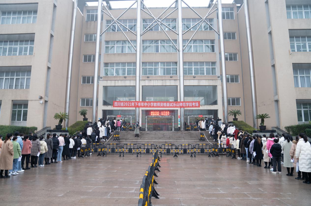 乐山师范学院考点共接纳来自学前、小学、初中、高中4个学段17个学科的考生2655人,设置面试考室58个、候考室2个、抽题室2个、备用考室2个、发热考室2个、备课室6个、教具配发室1个、临时医疗室1个、考生临时休息与打印室1个、考官休息室1个、临时就餐室2个、考务室2个,准备电脑、打印机、教具等300余套,安排面试考官174人,相关工作人员与学生助理共300余人。