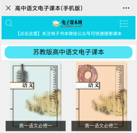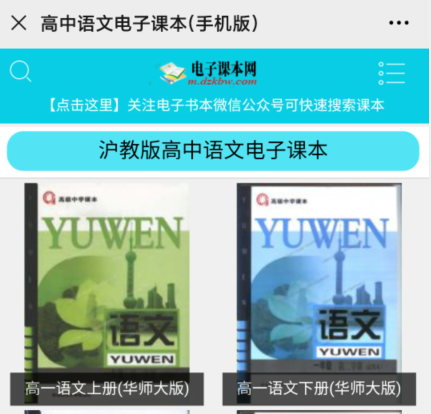 3.点击对话框弹出的链接,进入高中语文电子课本页面,页面中有不同版本的高中语文电子课本。