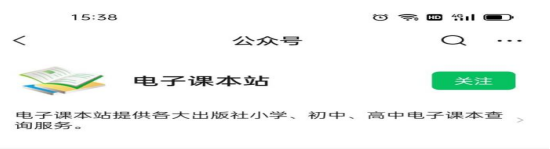 1.微信端,搜索公众号“电子课本站”,点击关注