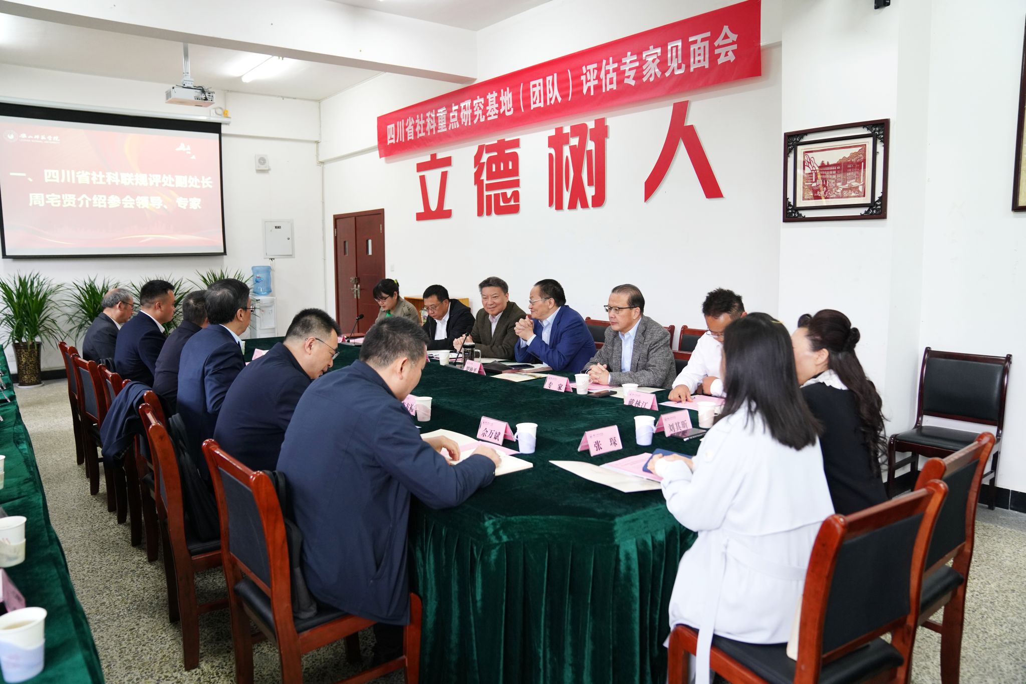 本网讯(文图/巴玉宁)心怀“国之大者”,助力乡村教育。4月7日上午,四川省社科联党组副书记、副主席罗仲平带队,专家组一行6人莅临教育科学学院开展四川省社会科学高水平研究团队评估工作。学校党委书记胡丹教授,党委副书记、校长刘进教授,市委宣传部副部长张琛,市社科联主席刘其昕,学校科研处、人事处、学发处、信实处、后保部等职能部门负责人以及本次评估的四川省社会科学高水平研究团队全体成员参加见面会。会议由省社科联规划评奖处副处长周宅贤主持。
