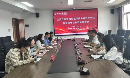 5月15日,调研组对成都文理学院进行了访问。在教育学院院长助理王和琴的带领下,参观了学前教育专业的实验实训基地。在院长卢伟的主持下,双方进行了深入交流,涵盖实践教学安排、课程体系优化、毕业生就业质量等多个方面。成都文理学院各领导、教师积极回应了乐山师范学院提出的问题。